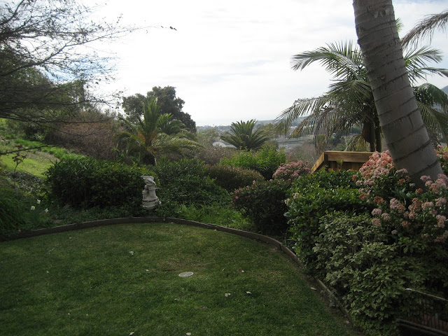 | Erics mammas och pappas bakgard. Lite mulet idag. Annars kan man se hela vagen ner till vattnet. |